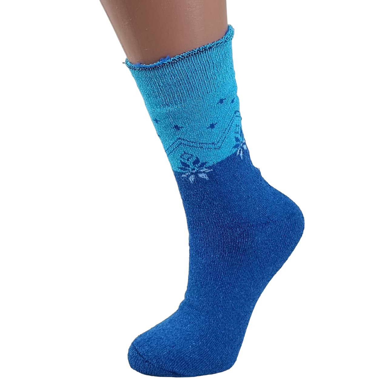 Шкарпетки жіночі махрові високі 23-25 розмір (36-40 взуття) Орнамент зимові синій