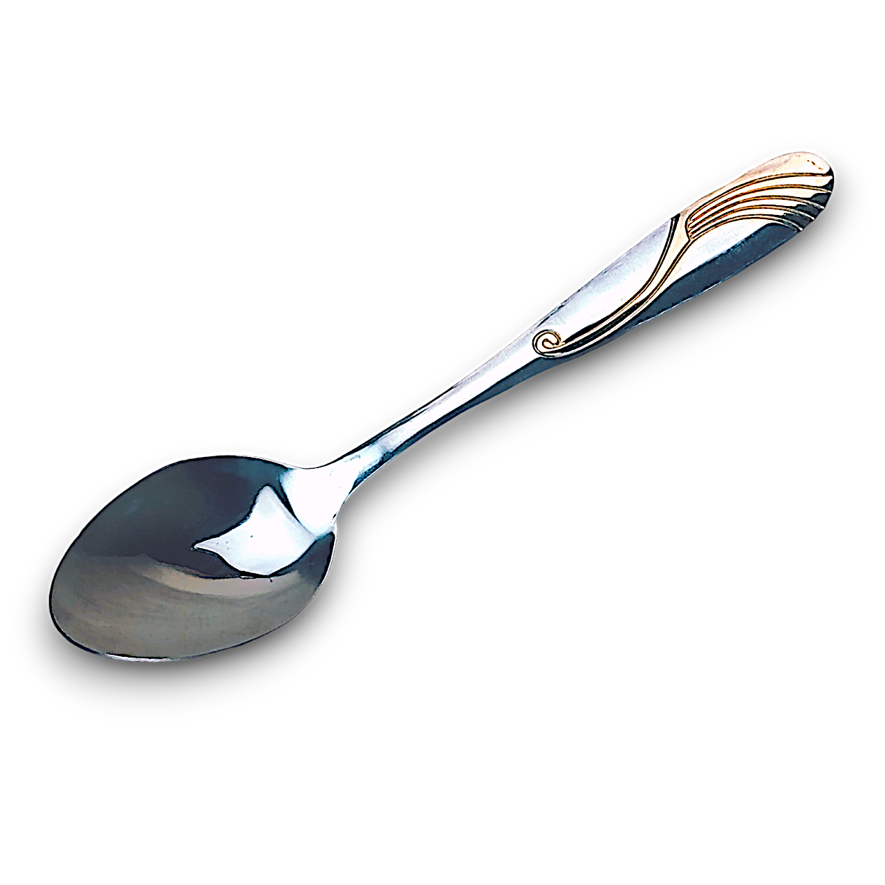 Столова ложка — це столовий прилад, який використовується для їжі супів, рагу та інших рідких страв. У нього овальна чаша та довга ручка. Столові ложки"Золота Хвиля" виготовляються із нержавіючої сталі з додаванням на ручці малюнка у вигляді хвилі золотого кольору.